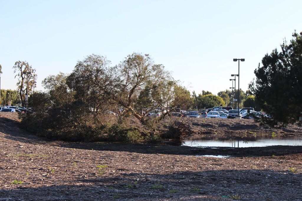 When classes started, what remained from the storm was the flooded area and a toppled overtree between Parking Lots 3 and 6, a collapsed tree near SCC, as well as mudded areas throughout the campus.